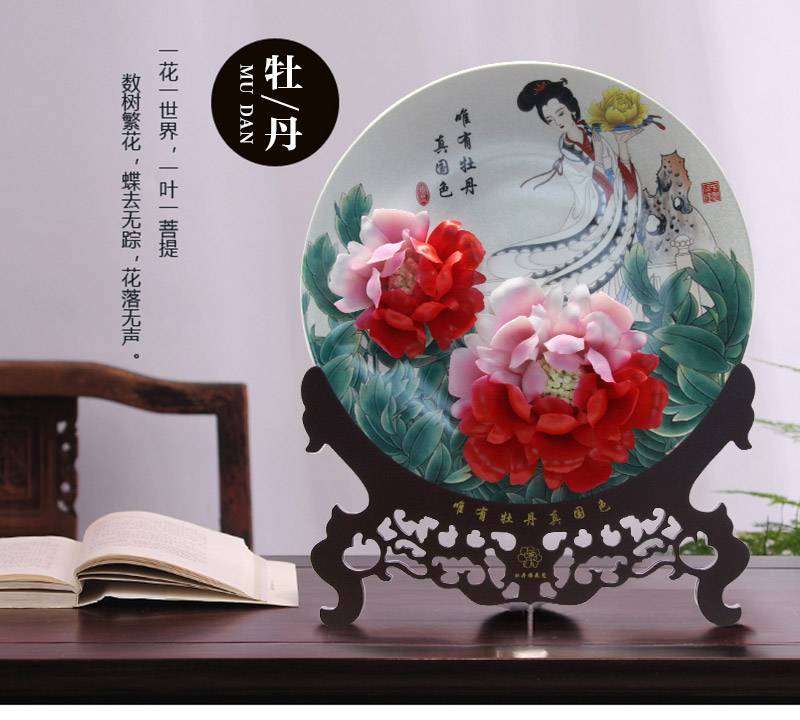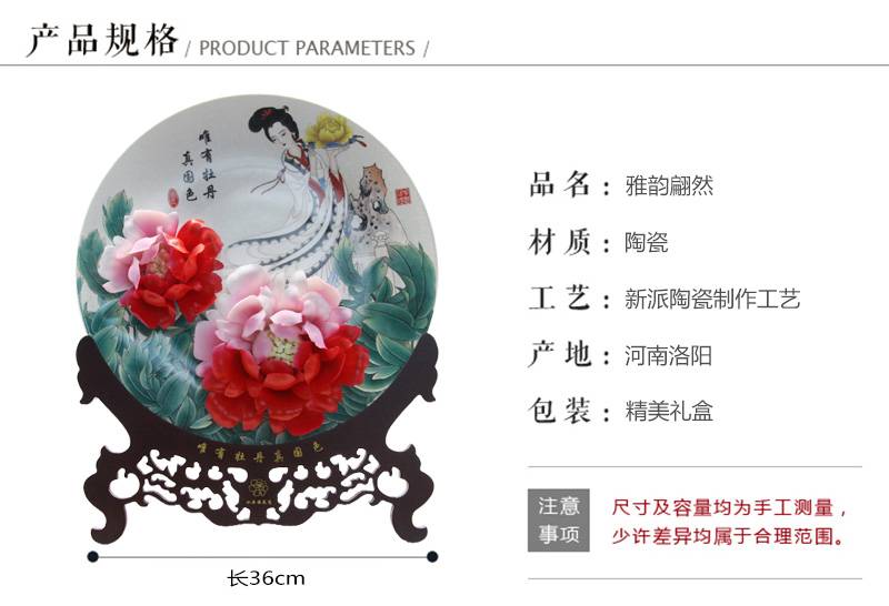 雅韵翩然牡丹瓷摆件 二乔彩绘牡丹瓷约15寸 洛阳特色牡丹瓷 家居摆件