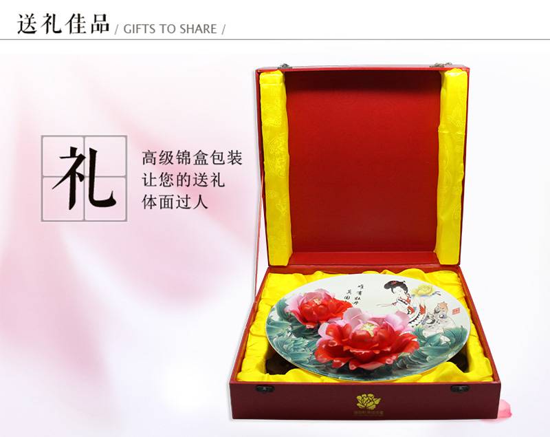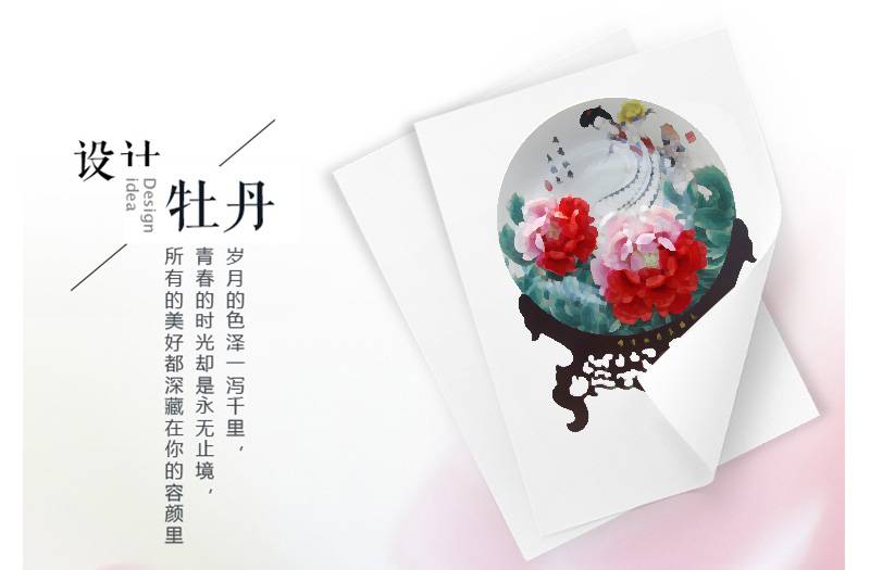 手工捏花,中式古典摆件,非遗釉下彩工艺,二乔彩绘牡丹瓷礼盒装。